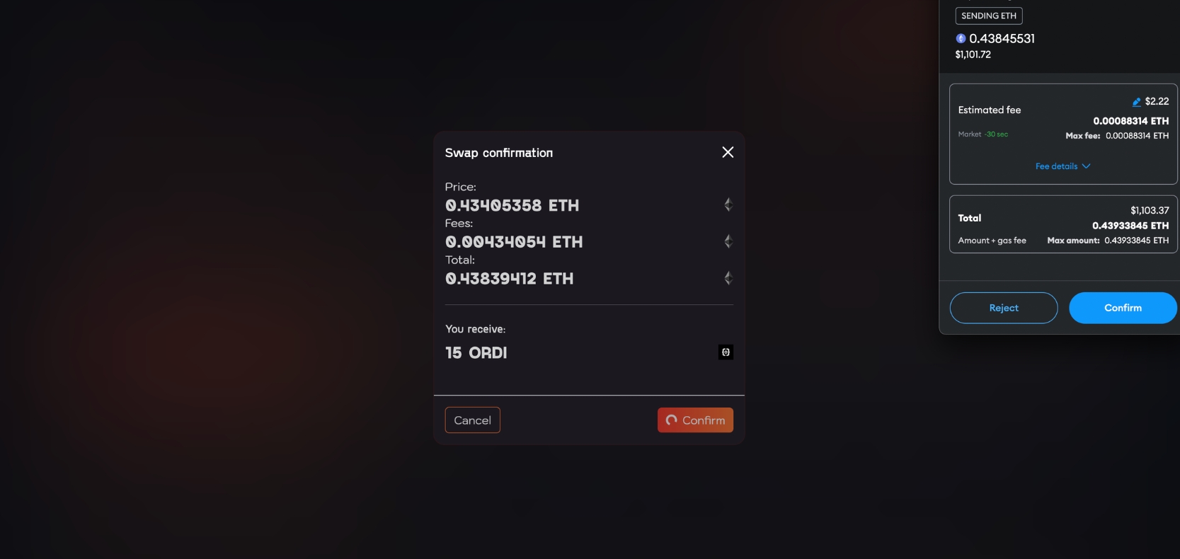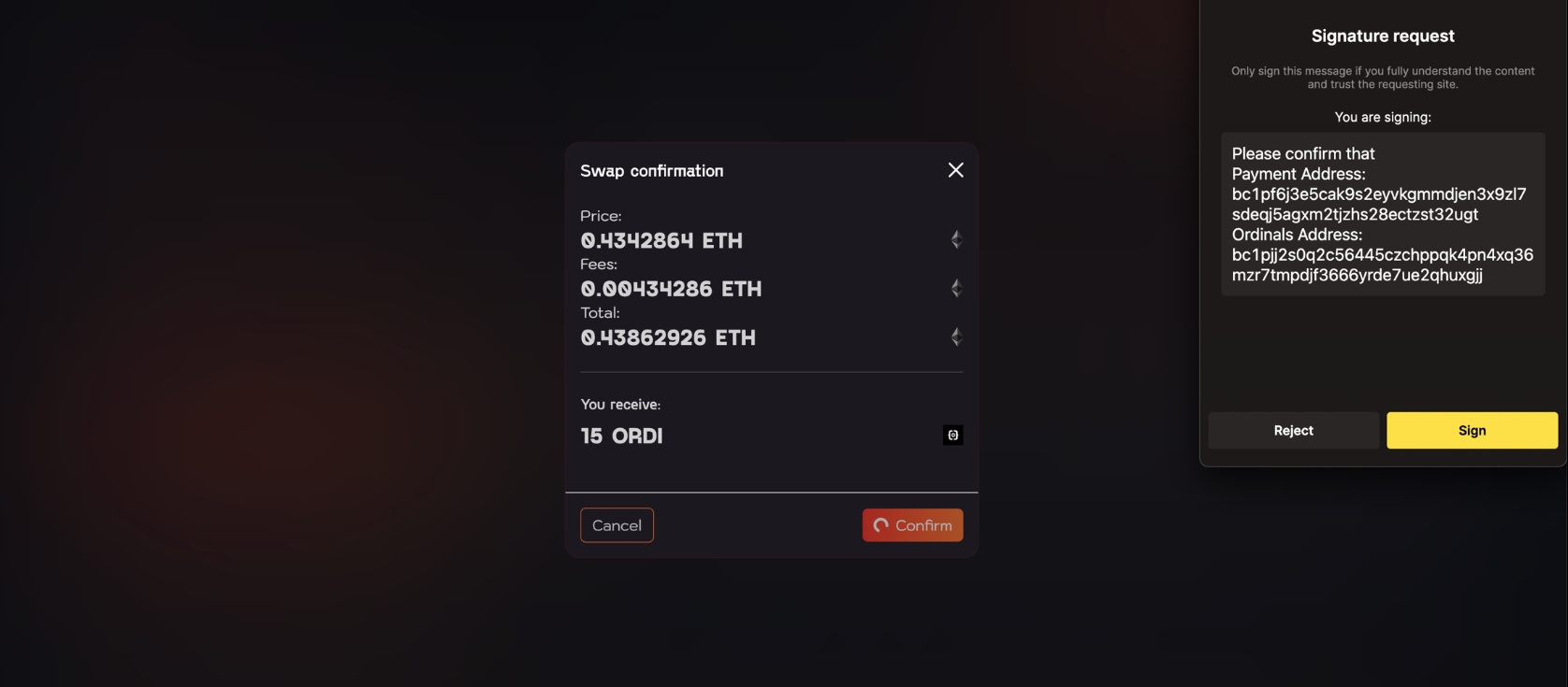 Users must then sign the TX through both their Unisat and ETH wallets.