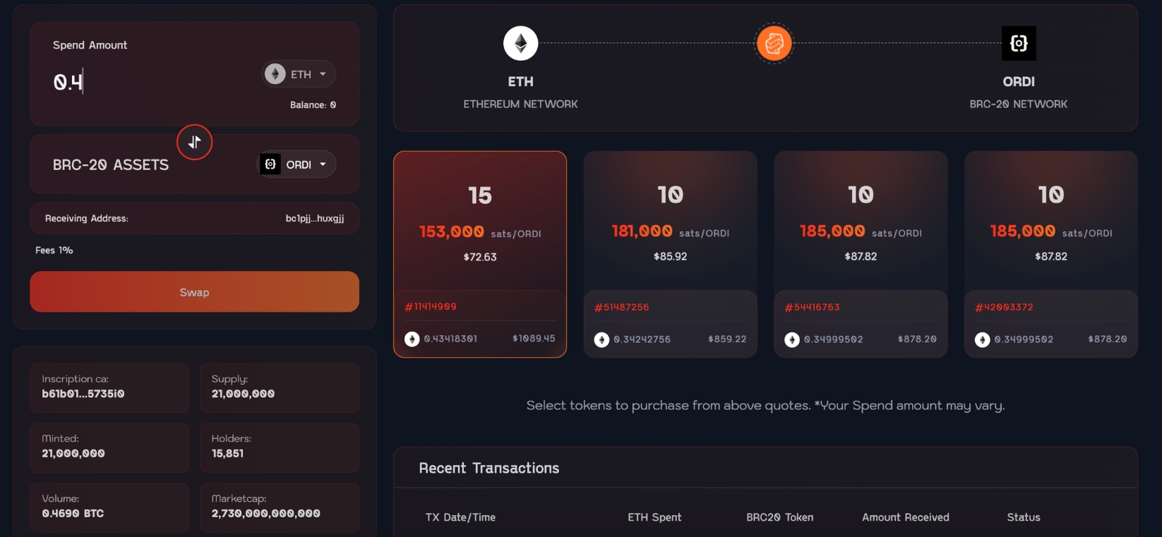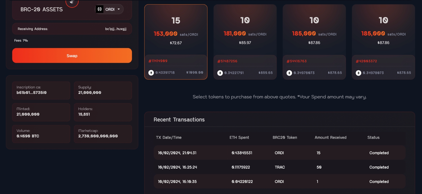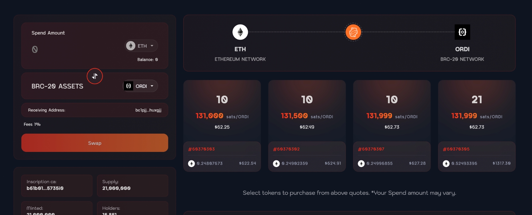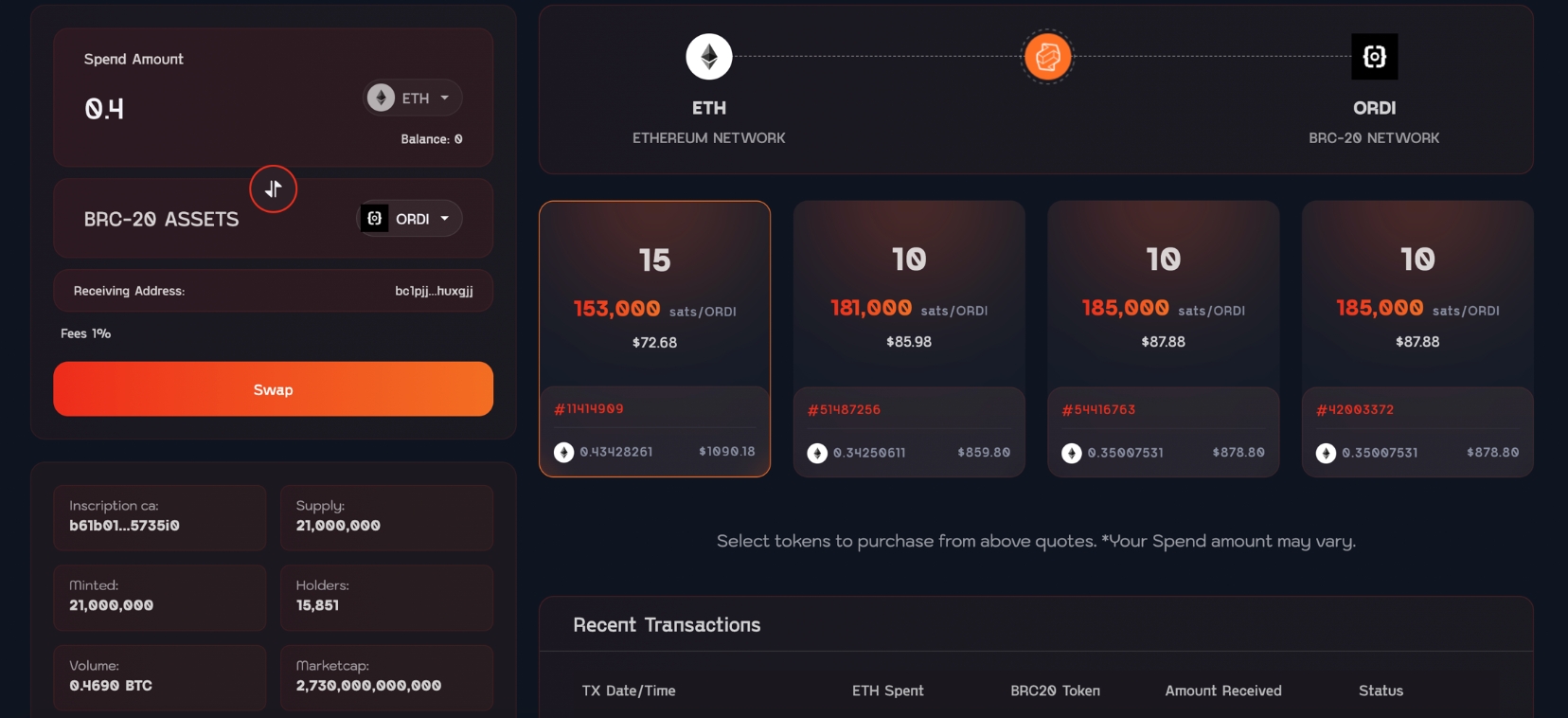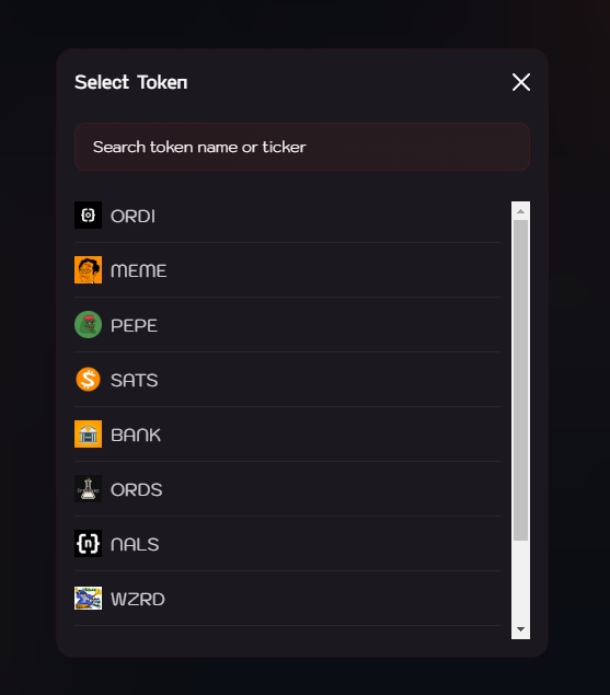 Next users must specify the BRC-20 token they would like to purchase either by using the list or by providing the token name / ticker.
